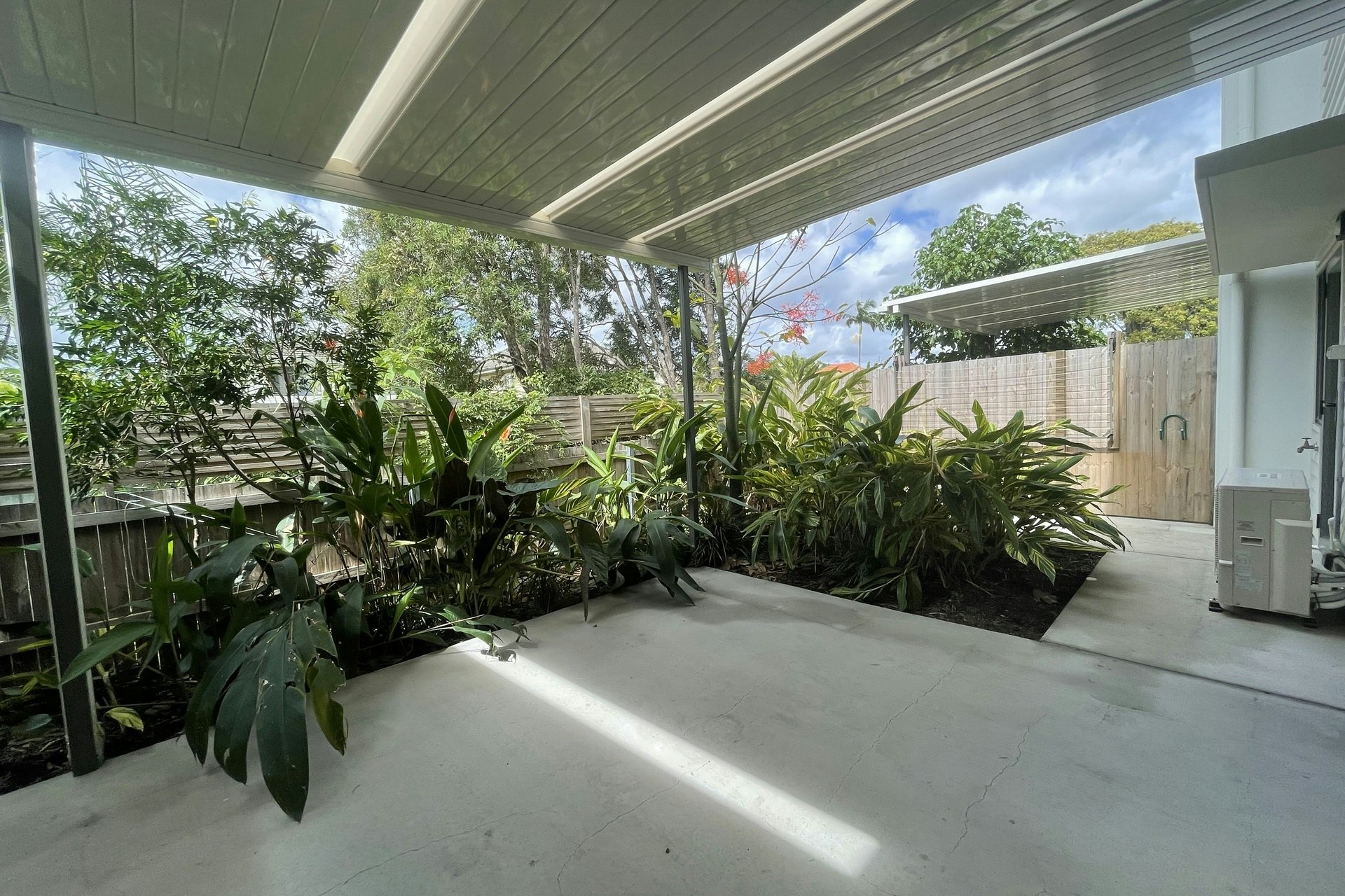 - Low-maintenance covered outdoor patio with a lush garden providing privacy